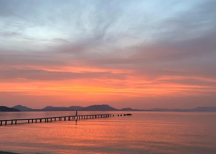 Guests can dine at a dining area equipped with coffee and tea making equipment. The kitchen also offers a fridge, an oven, and kitchenware. This beachfront villa can be reached by car in 43 minutes from Ioannis Kapodistrias airport. An array of such activities as canoeing is offered.